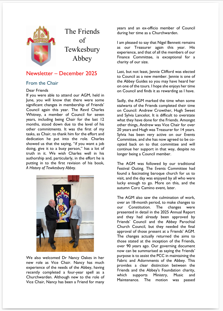 The Annual Friends’ Festival was held on 29th June 2025. The Friends were delighted to welcome The Reverend Canon Dr Malcolm Brown as the Preacher at the Choral Eucharist and Guest Speaker in the afternoon. At the AGM Dr Ian White was appointed as Chair, and Dr Nancy Oakes as…
